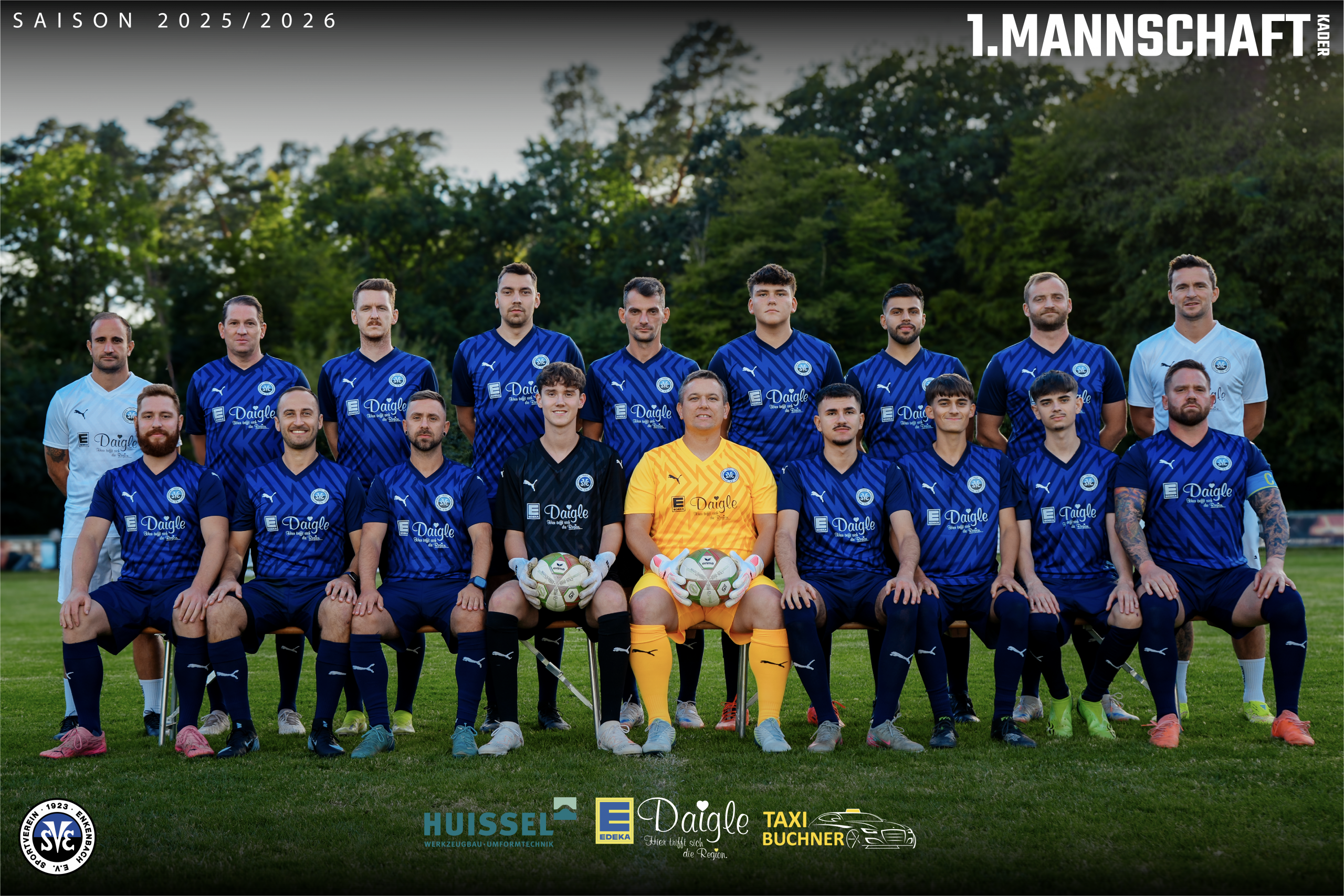 1. Mannschaft Saison 2025/2026: Kader v.l.n.r.: Vorne: Klaus Armstroff, Bastian Wörner, Dominik Hupp, Max Hinkel, Brian Nush, Ali Gökce, Philipp Mayer, James Mayer-Nicholson, Jacob Snidle Hinten: Philipp Wißmann, Martin Wohlgemuth,