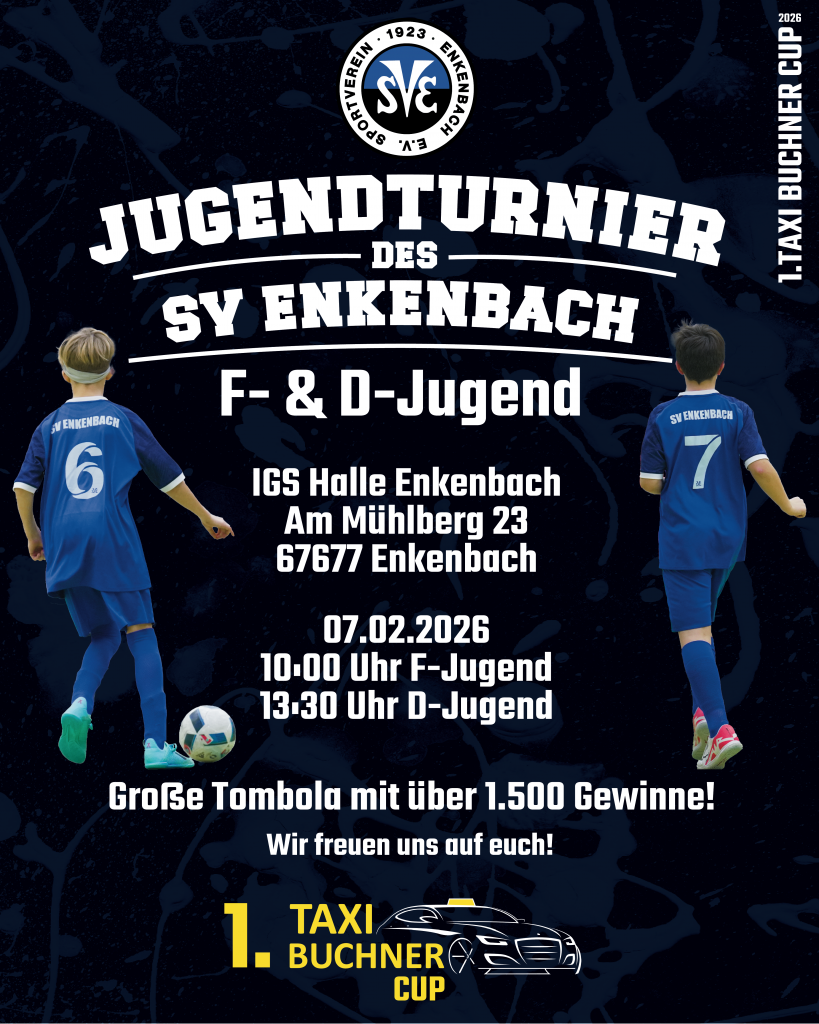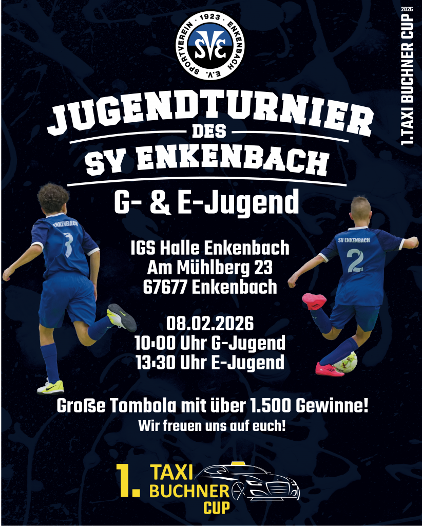 Kommt vorbei, feuert die Jugendmannschaften an und feiert gemeinsam mit uns den großen 1.Taxi Buchner Cup. Dieses Turnier steht nicht nur für Fußball, sondern auch für Gemeinschaft, Engagement und den Zusammenhalt rund um den SV Enkenbach.
