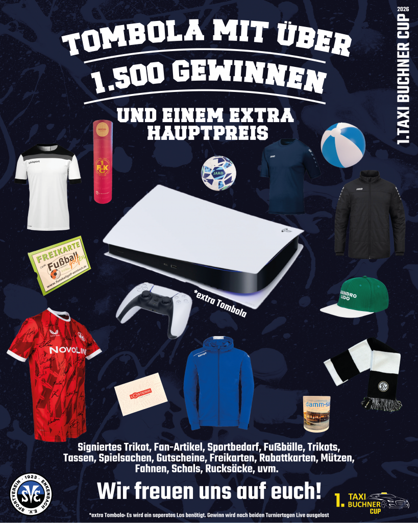 Ein besonderes Highlight der Tombola ist ein signiertes Trikot des 1. FC Kaiserslautern. Darüber hinaus gibt es weitere Trikots unterschiedlicher Marken, zahlreiche SportartikelFußbälleGutscheineRabattkartenEssensgutscheineTassenBasecaps und vieles mehr zu gewinnen. Die Tombola bietet damit für Groß und Klein attraktive Preise und sorgt an beiden Turniertagen für zusätzliche Spannung abseits des Spielfelds.