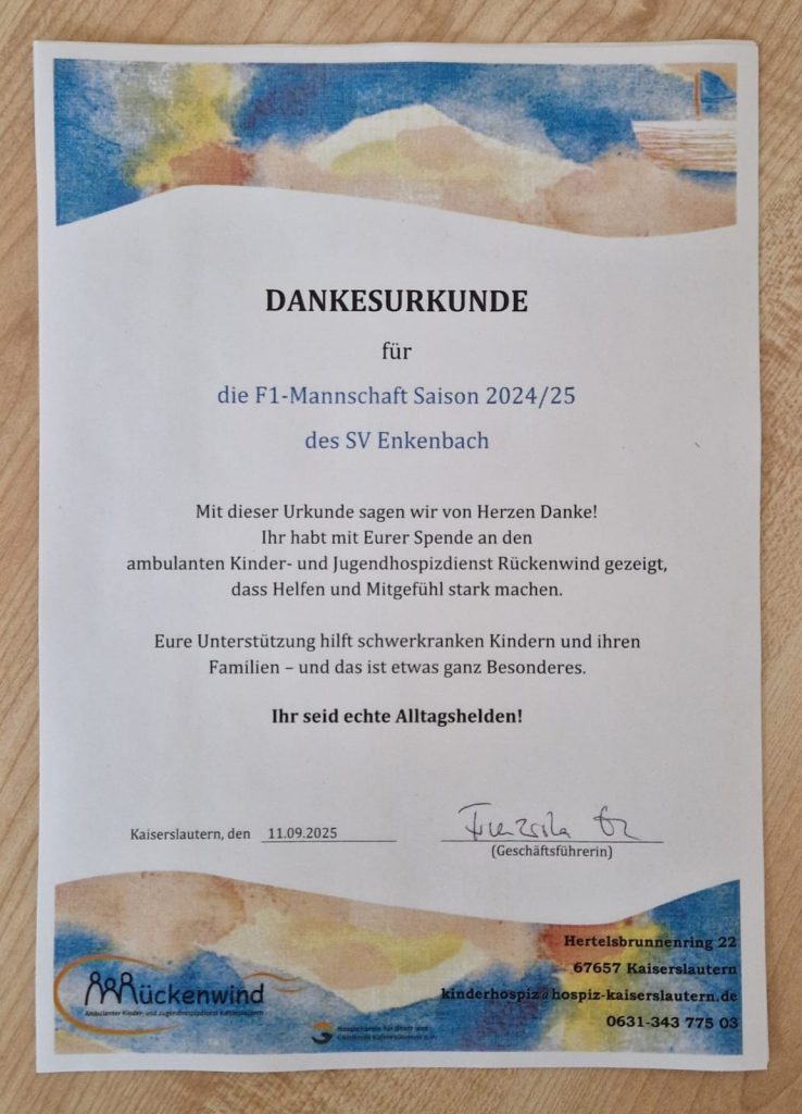 Und so wurde schnell klar, dass wir das Geld an den ambulanten Kinder- und Jugendhospizdienst Rückenwind e. V. (www.hospiz-kaiserslautern.de) spenden.