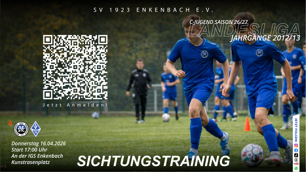 Die JSG SV Alsenborn/ SV Enkenbach lädt erneut alle fußballbegeisterten Nachwuchsspieler zum Sichtungstraining der C-Jugend ein. Am Donnerstag, den 16. April 2026 um 17:00 Uhr, haben talentierte Spieler der Jahrgänge 2012 und 2013 die Möglichkeit, sich für die kommende Saison zu präsentieren und Teil eines ambitionierten Teams zu werden.