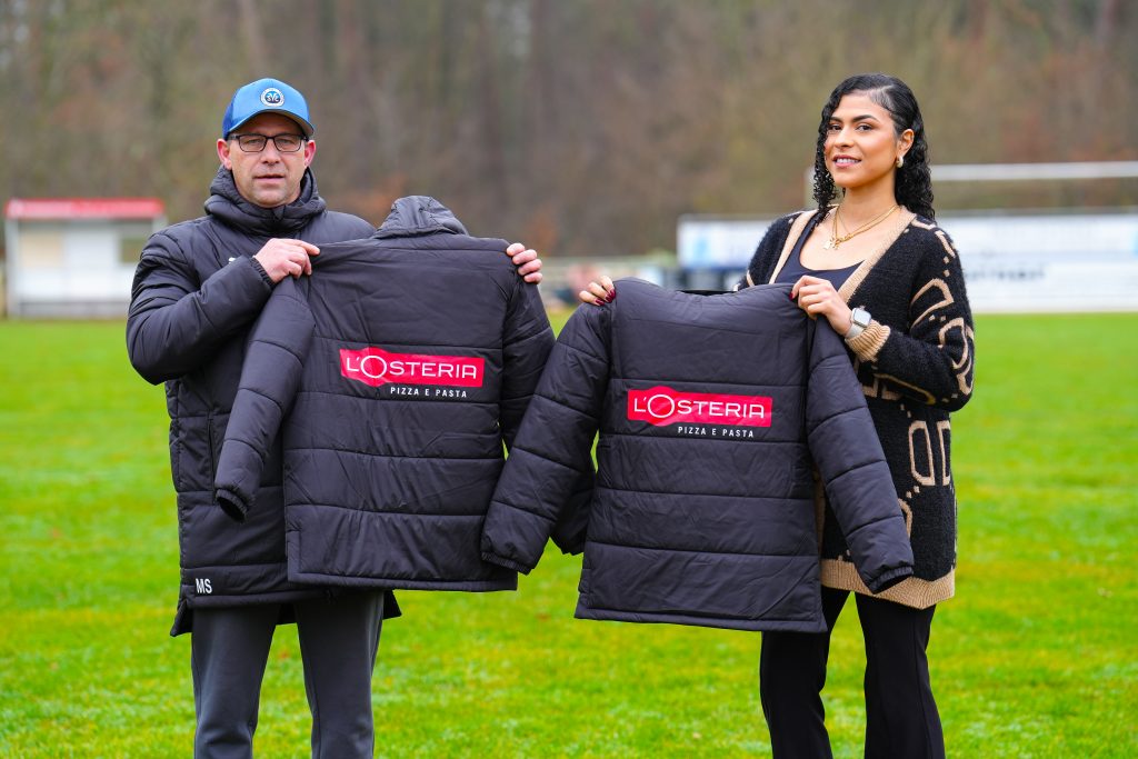Im Namen des gesamten Vereins, der Mannschaft, der Trainer und natürlich auch der Eltern möchten wir uns herzlich für dieses Sponsoring bedanken. Ein besonderer Dank gilt Elisabeth von der L’Osteria in Kaiserslautern, die für die Übergabe der Jacken und das gemeinsame Foto extra unsere Anlage in Enkenbach besucht hat. Das ist nicht selbstverständlich und zeigt, wie sehr regionale Partner den Jugendfußball unterstützen.